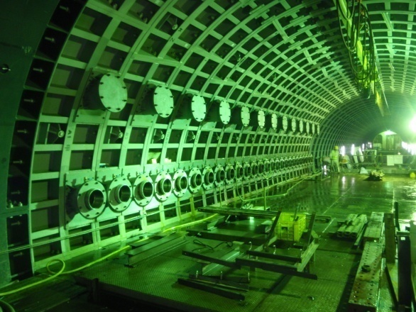 本工事は、鉄道駅舎部および換気塔部築造のためのシールドトンネル切開き掘削時におけるトンネルの変形を抑制する切梁(鋼管)を切開き前に設置する工事である。