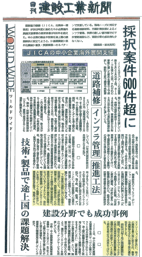 2017年7月26日(水)付の日刊建設工業新聞に、弊社が行ったJICA実証事業の記事が掲載されました。